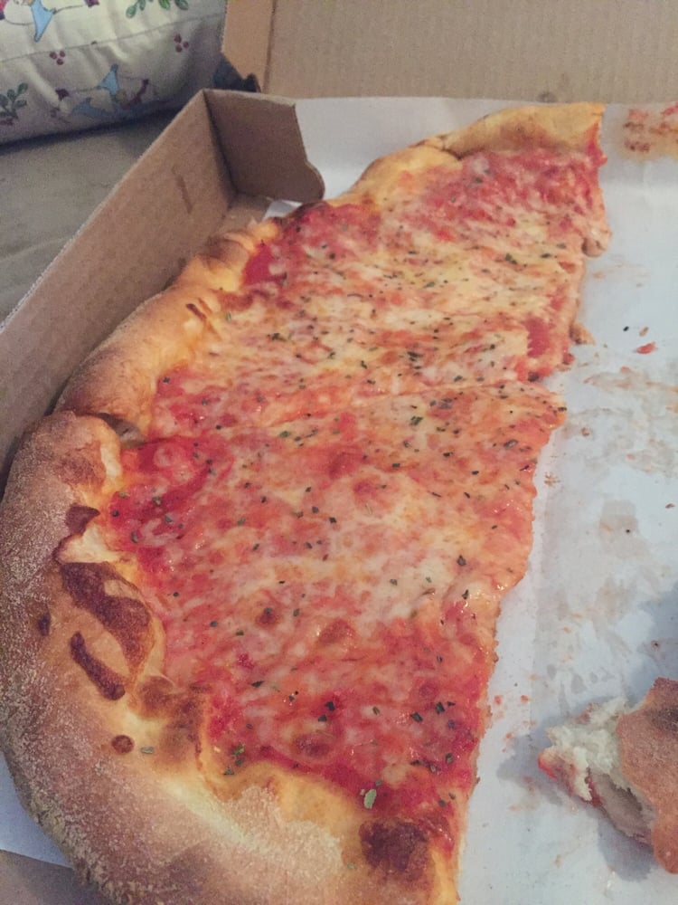 White or marinara, broccoli rabe, spinach, green peppers, black olives, red onions, mushrooms, sliced tomatoes, fresh garlic, olive oil, Parmesan and mozzarella. Vegetarian.